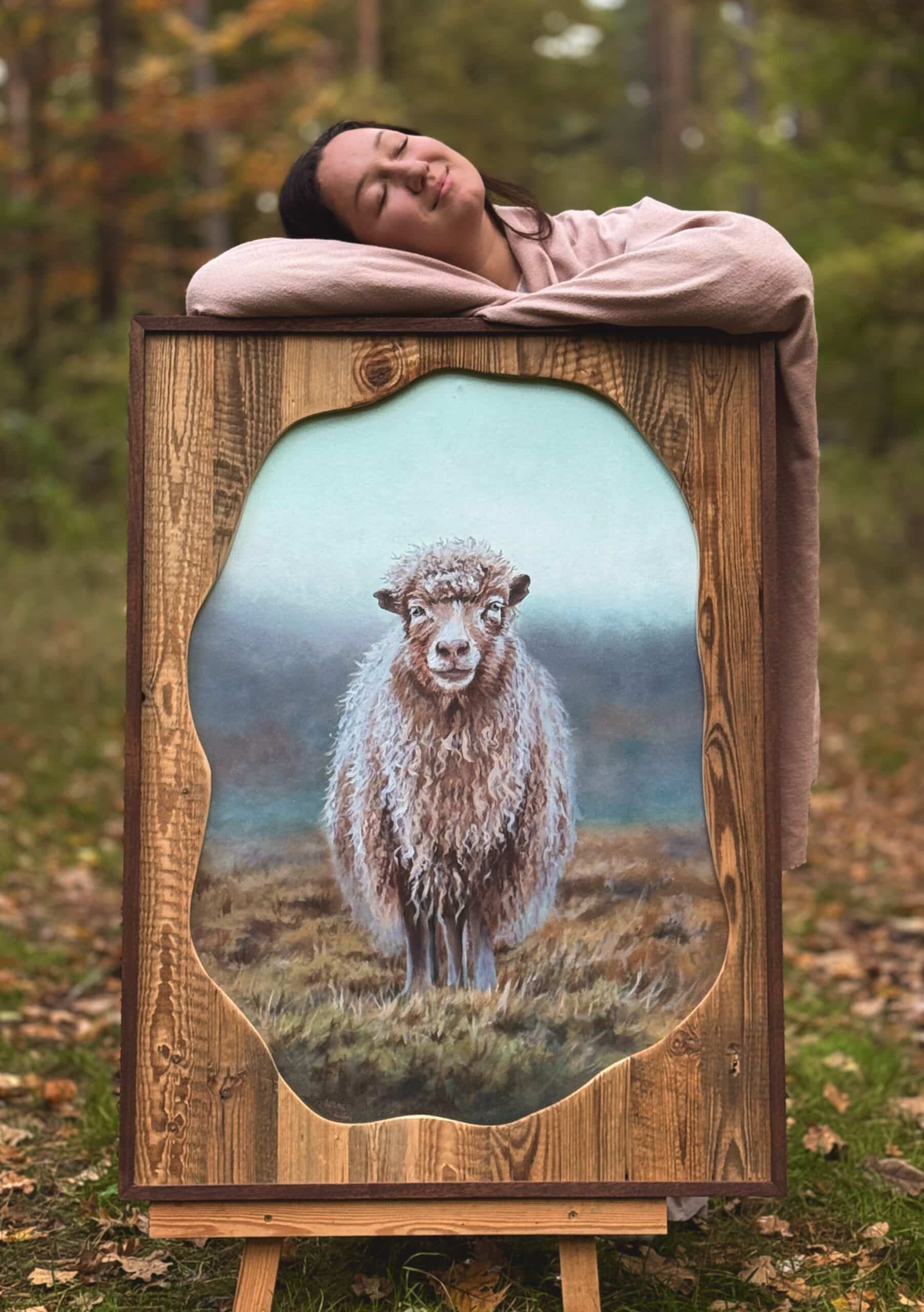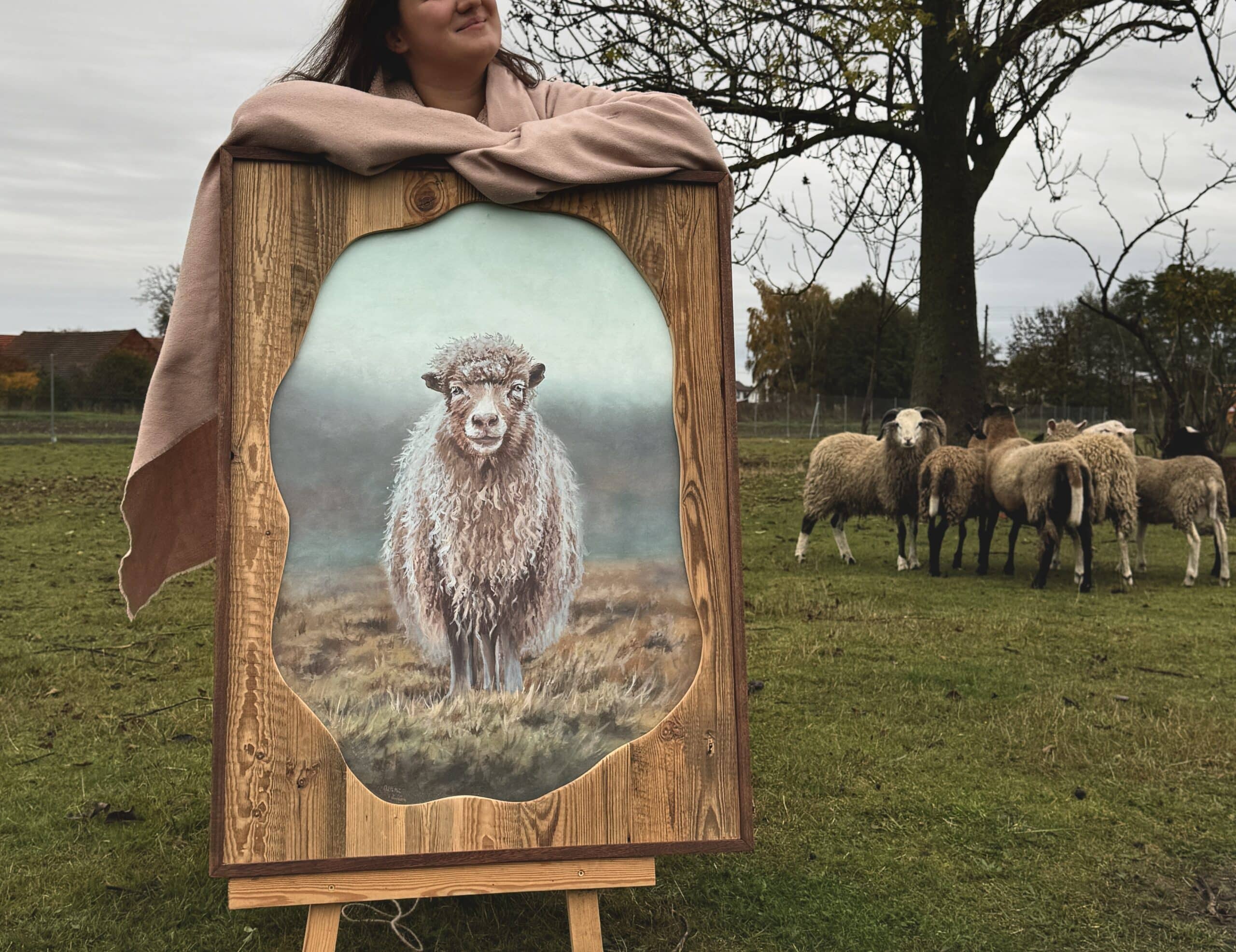 Obraz ,,Łowca” malowałam słuchając beczenia całego stada owiec za oknem.