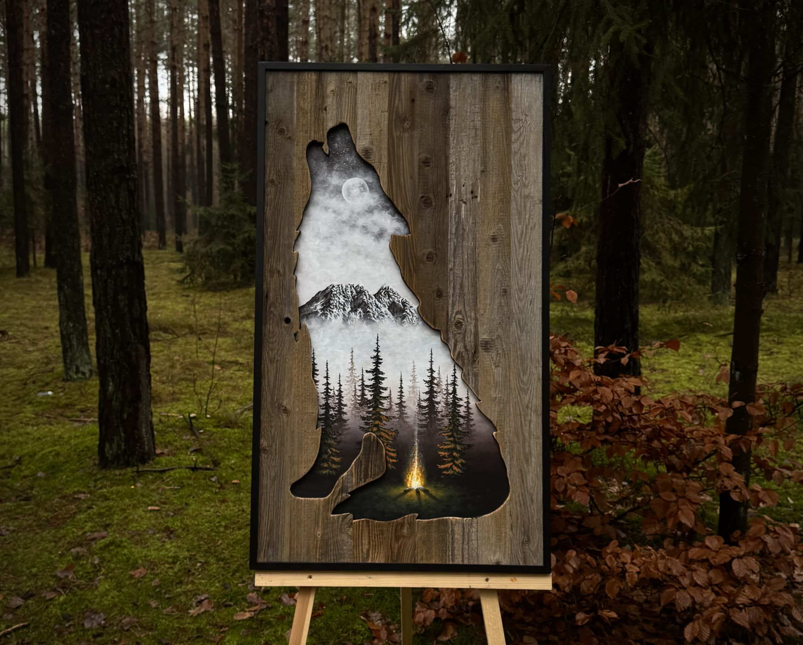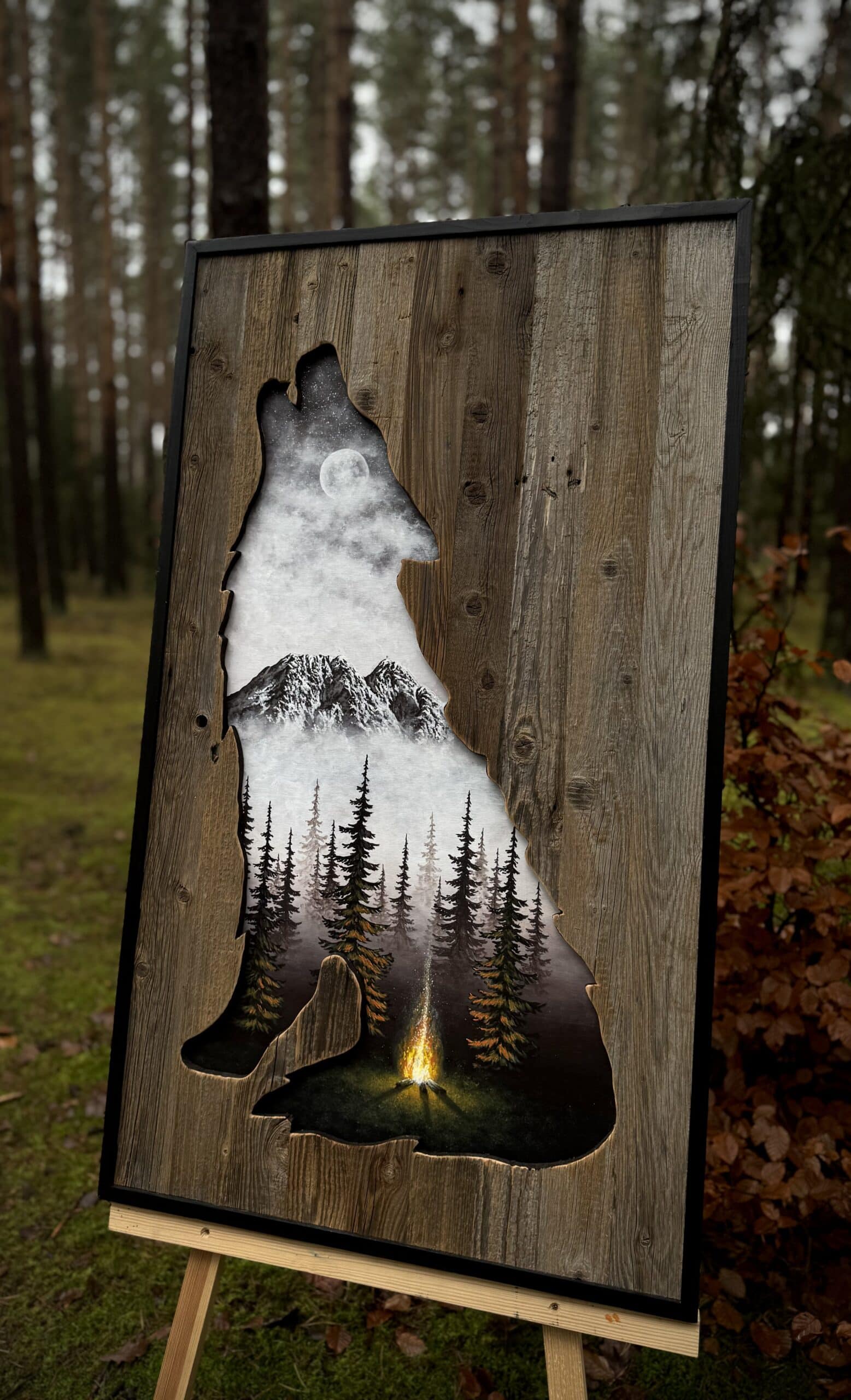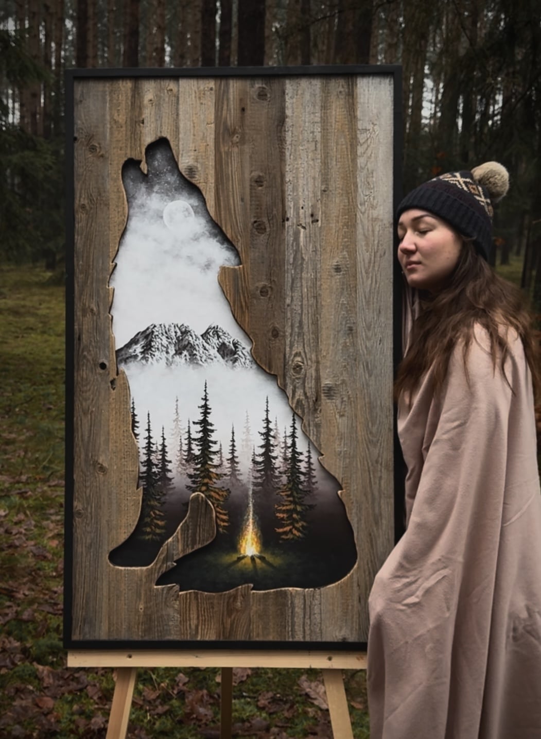 Kolory obrazu na żywo: ciepłe beże i brązy. Niekiedy wpadające w burgund. Żywe, ciepłe ognisko.