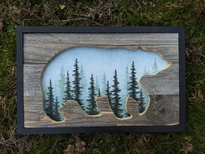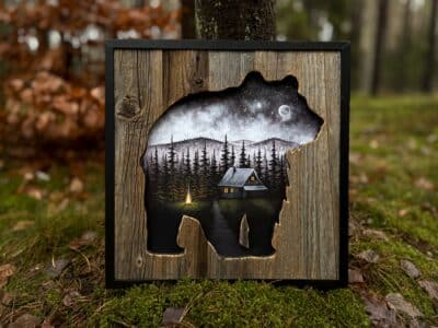 cabin in the bear 42×43 cm